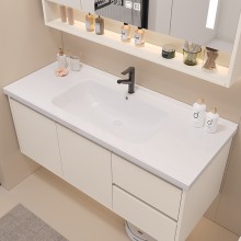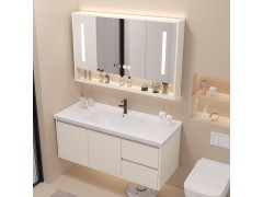 智能奶油陶瓷一體盆衛(wèi)生間浴室柜鏡柜組合輕奢簡(jiǎn)約洗手臉盆洗漱臺(tái)