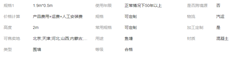 規(guī)格11.9m*0.5 合格 可定制 正常情況下50年以上 水泥圍墻
