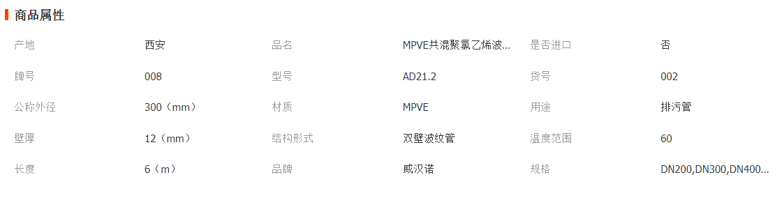 廠家供應聚乙烯MPVE共混聚氯乙烯mpve雙壁波紋管排污排水 DN300