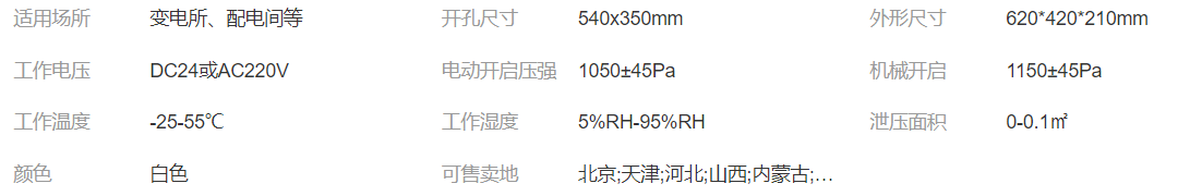 三、電動(dòng)泄壓口參數(shù):